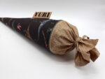 Die Schultüte wird aus hochwertigen Designerstoffen genäht und auf Wunsch mit dem Namen des Schulkindes individualisiert. Die Tüte ist 70cm hoch und wird mit einem entsprechenden Papprohling geliefert. Um eine bleibende Erinnerung an den Einschulungstag zu haben, kann nach der Einschulung der Papprohling aus der Schultüte entfernt werden und und mit dem Inlet als Kuschelkissen Einzug in das Kinderzimmer halten.