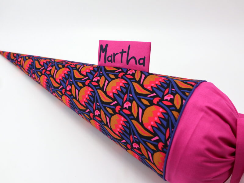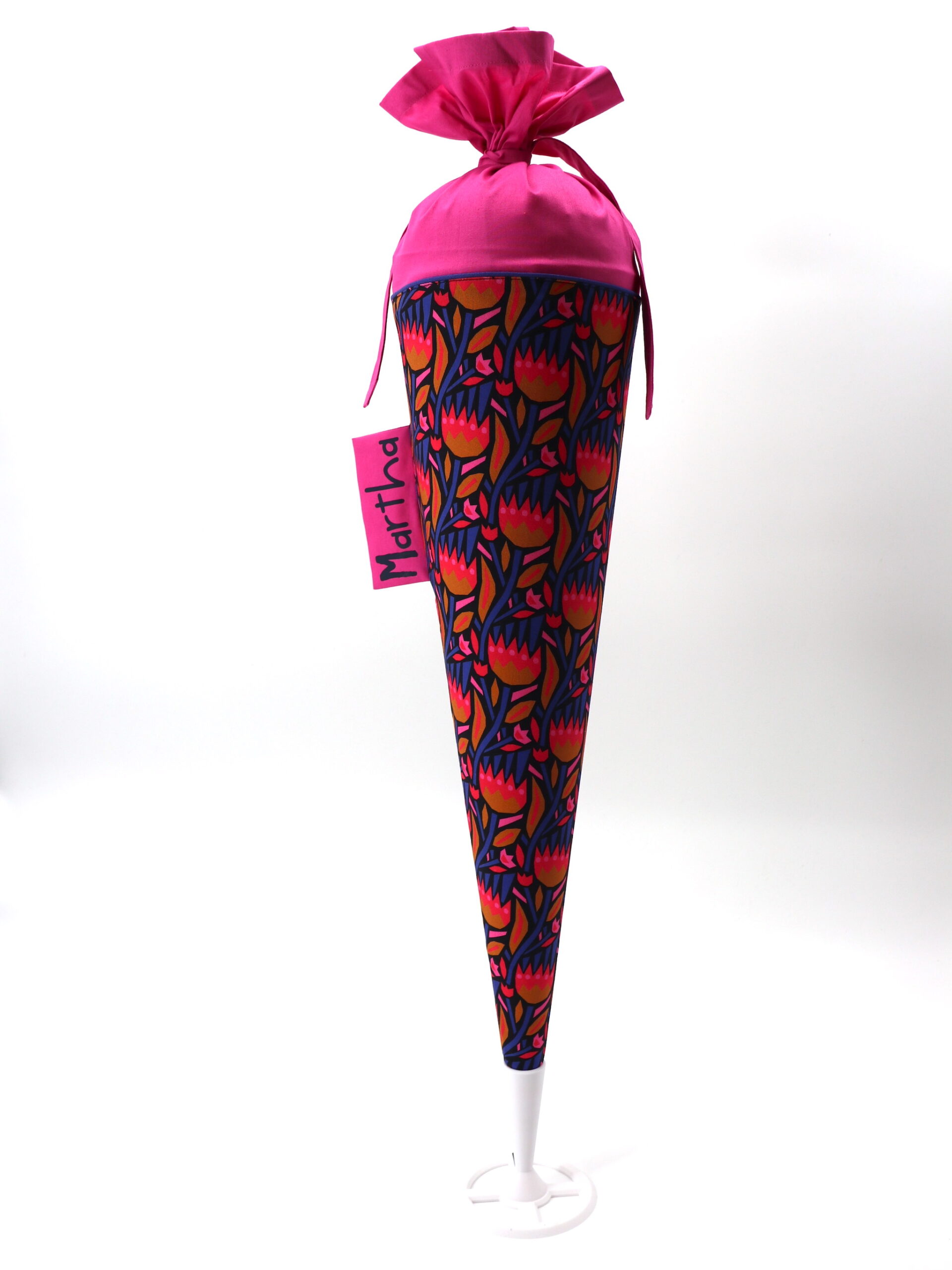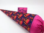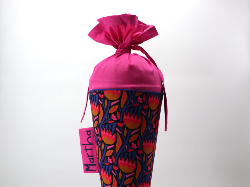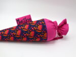Die Schultüte wird aus hochwertigen Designerstoffen genäht und auf Wunsch mit dem Namen des Schulkindes individualisiert. Die Tüte ist 70cm hoch und wird mit einem entsprechenden Papprohling geliefert. Um eine bleibende Erinnerung an den Einschulungstag zu haben, kann nach der Einschulung der Papprohling aus der Schultüte entfernt werden und und mit dem Inlet als Kuschelkissen Einzug in das Kinderzimmer halten.