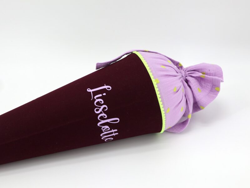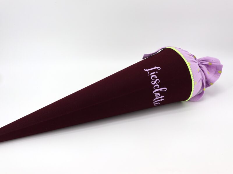 Die Schultüte wird aus hochwertigen Designerstoffen genäht und auf Wunsch mit dem Namen des Schulkindes individualisiert. Die Tüte ist 70cm hoch und wird mit einem entsprechenden Papprohling geliefert. Um eine bleibende Erinnerung an den Einschulungstag zu haben, kann nach der Einschulung der Papprohling aus der Schultüte entfernt werden und und mit dem Inlet als Kuschelkissen Einzug in das Kinderzimmer halten.