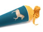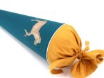 Die Schultüte wird aus hochwertigen Designerstoffen genäht und auf Wunsch mit dem Namen des Schulkindes individualisiert. Die Tüte ist 70cm hoch und wird mit einem entsprechenden Papprohling geliefert. Um eine bleibende Erinnerung an den Einschulungstag zu haben, kann nach der Einschulung der Papprohling aus der Schultüte entfernt werden und und mit dem Inlet als Kuschelkissen Einzug in das Kinderzimmer halten.