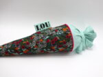 Die Schultüte wird aus hochwertigen Designerstoffen genäht und auf Wunsch mit dem Namen des Schulkindes individualisiert. Die Tüte ist 70cm hoch und wird mit einem entsprechenden Papprohling geliefert. Um eine bleibende Erinnerung an den Einschulungstag zu haben, kann nach der Einschulung der Papprohling aus der Schultüte entfernt werden und und mit dem Inlet als Kuschelkissen Einzug in das Kinderzimmer halten.