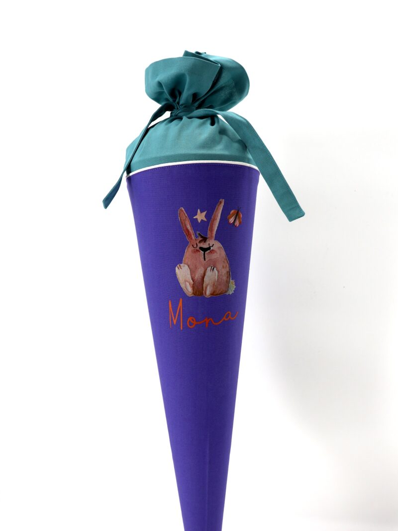 Die Schultüte wird aus hochwertigen Designerstoffen genäht und auf Wunsch mit dem Namen des Schulkindes individualisiert. Die Tüte ist 70cm hoch und wird mit einem entsprechenden Papprohling geliefert. Um eine bleibende Erinnerung an den Einschulungstag zu haben, kann nach der Einschulung der Papprohling aus der Schultüte entfernt werden und und mit dem Inlet als Kuschelkissen Einzug in das Kinderzimmer halten.