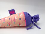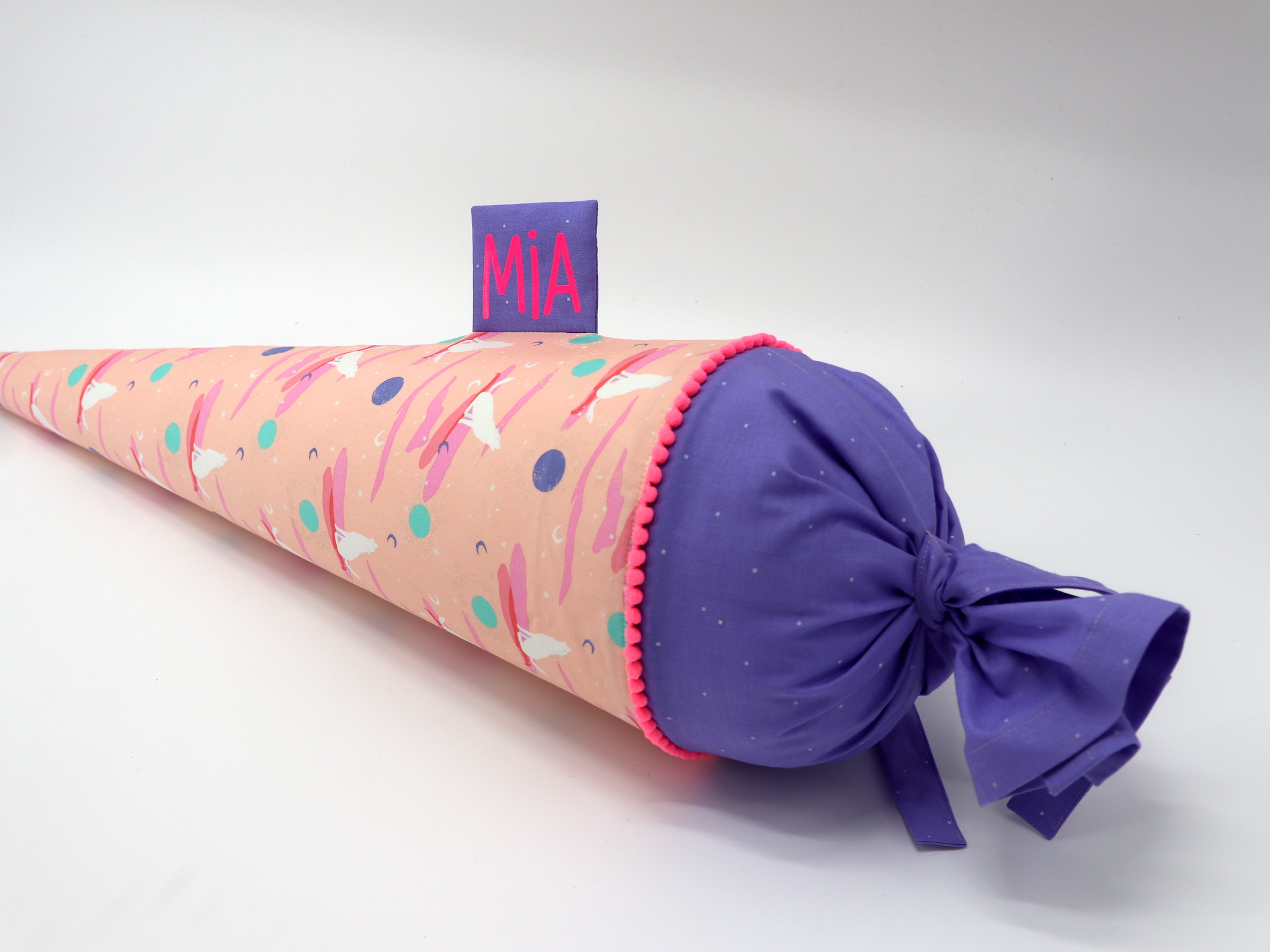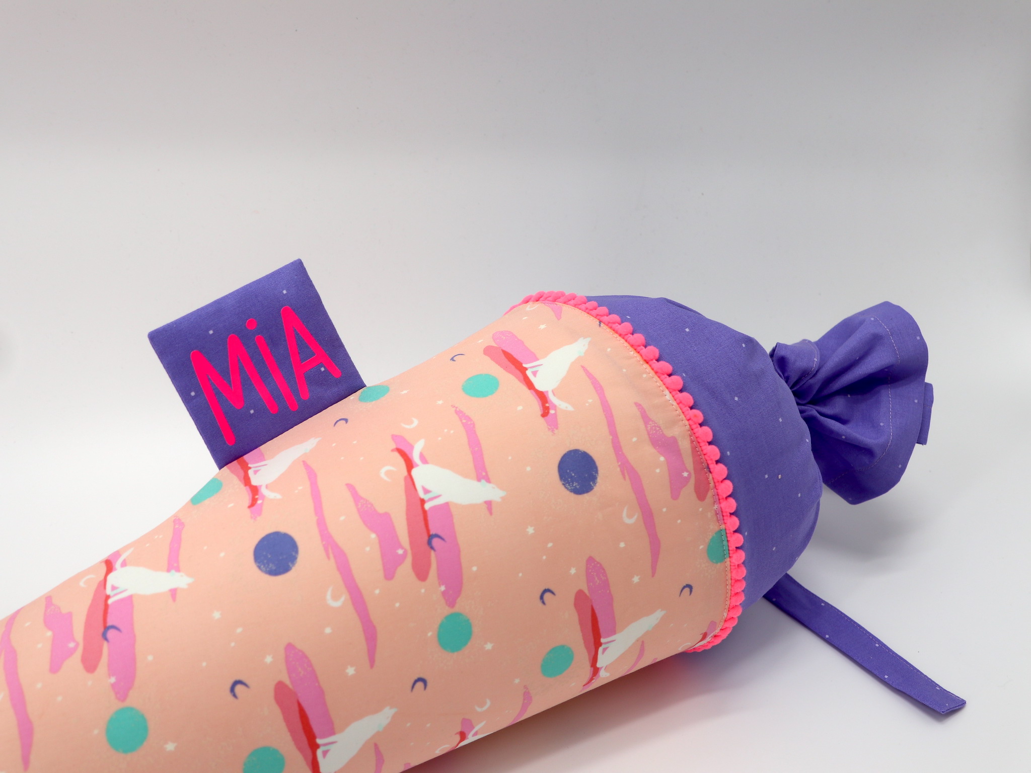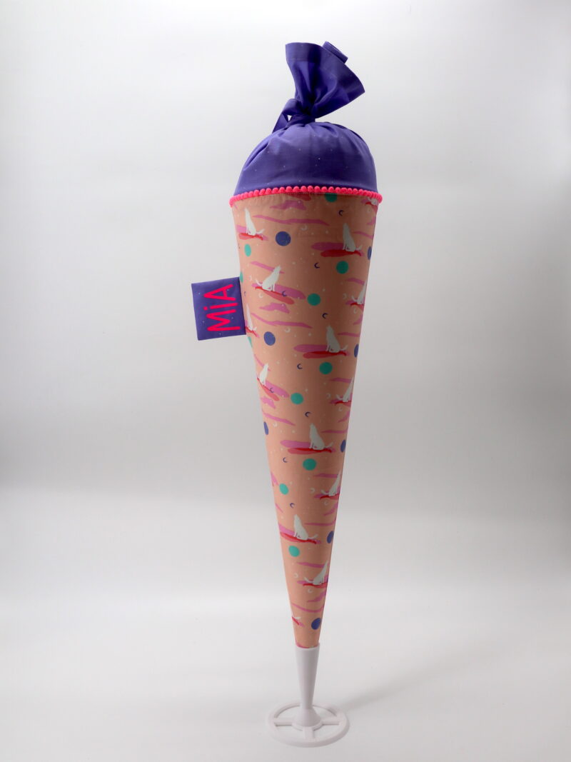 Die Schultüte wird aus hochwertigen Designerstoffen genäht und auf Wunsch mit dem Namen des Schulkindes individualisiert. Die Tüte ist 70cm hoch und wird mit einem entsprechenden Papprohling geliefert. Um eine bleibende Erinnerung an den Einschulungstag zu haben, kann nach der Einschulung der Papprohling aus der Schultüte entfernt werden und und mit dem Inlet als Kuschelkissen Einzug in das Kinderzimmer halten.