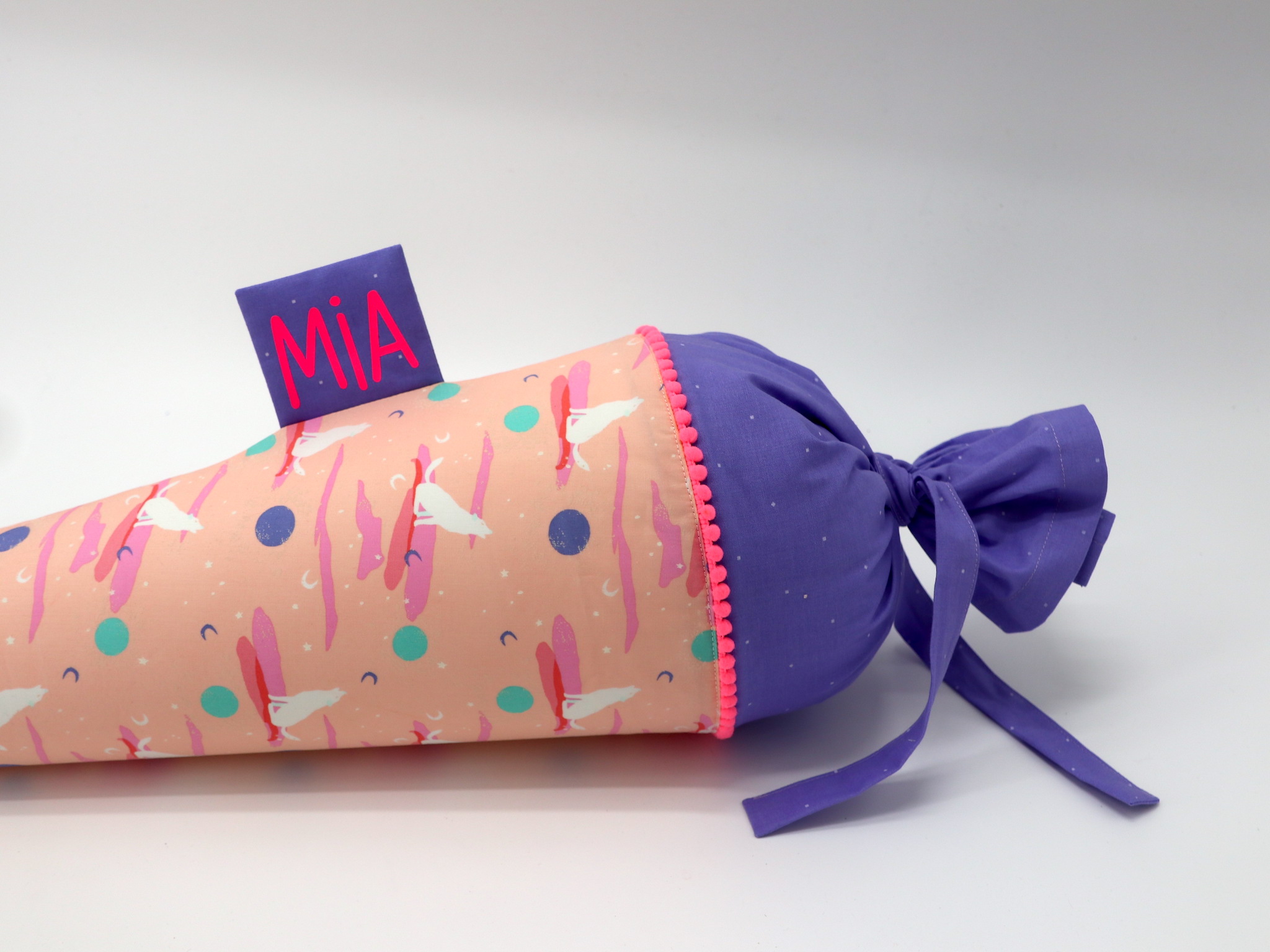 Wir nähen die passende Zeugnismappe in dem Stoff des Tütenkörpers. Hier gibt es nähere Details.