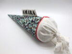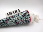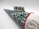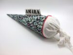Die Schultüte wird aus hochwertigen Designerstoffen genäht und auf Wunsch mit dem Namen des Schulkindes individualisiert. Die Tüte ist 70cm hoch und wird mit einem entsprechenden Papprohling geliefert. Um eine bleibende Erinnerung an den Einschulungstag zu haben, kann nach der Einschulung der Papprohling aus der Schultüte entfernt werden und und mit dem Inlet als Kuschelkissen Einzug in das Kinderzimmer halten.