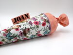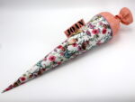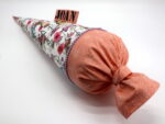 Die Schultüte wird aus hochwertigen Designerstoffen genäht und auf Wunsch mit dem Namen des Schulkindes individualisiert. Die Tüte wird mit einem entsprechenden Papprohling geliefert. Um eine bleibende Erinnerung an den Einschulungstag zu haben, kann nach der Einschulung der Papprohling aus der Schultüte entfernt werden und und mit dem Inlet als Kuschelkissen Einzug in das Kinderzimmer halten.