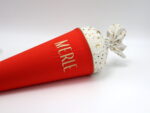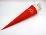 Die Schultüte wird aus hochwertigen Designerstoffen genäht und auf Wunsch mit dem Namen des Schulkindes individualisiert. Die Tüte wird mit einem entsprechenden Papprohling geliefert. Um eine bleibende Erinnerung an den Einschulungstag zu haben, kann nach der Einschulung der Papprohling aus der Schultüte entfernt werden und und mit dem Inlet als Kuschelkissen Einzug in das Kinderzimmer halten.
