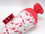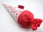 Die Schultüte wird aus hochwertigen Designerstoffen genäht und auf Wunsch mit dem Namen des Schulkindes individualisiert. Die Tüte wird mit einem entsprechenden Papprohling geliefert. Um eine bleibende Erinnerung an den Einschulungstag zu haben, kann nach der Einschulung der Papprohling aus der Schultüte entfernt werden und und mit dem Inlet als Kuschelkissen Einzug in das Kinderzimmer halten.