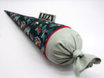 Die Schultüte wird aus hochwertigen Designerstoffen genäht und auf Wunsch mit dem Namen des Schulkindes individualisiert. Die Tüte wird mit einem entsprechenden Papprohling geliefert. Um eine bleibende Erinnerung an den Einschulungstag zu haben, kann nach der Einschulung der Papprohling aus der Schultüte entfernt werden und und mit dem Inlet als Kuschelkissen Einzug in das Kinderzimmer halten.