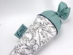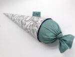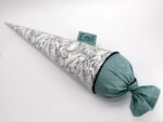 Die Schultüte wird aus hochwertigen Designerstoffen genäht und auf Wunsch mit dem Namen des Schulkindes individualisiert. Die Tüte ist 70cm hoch und wird mit einem entsprechenden Papprohling geliefert. Um eine bleibende Erinnerung an den Einschulungstag zu haben, kann nach der Einschulung der Papprohling aus der Schultüte entfernt werden und und mit dem Inlet als Kuschelkissen Einzug in das Kinderzimmer halten.