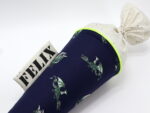 Die Schultüte wird aus hochwertigen Designerstoffen genäht und auf Wunsch mit dem Namen des Schulkindes individualisiert. Die Tüte ist 70cm hoch und wird mit einem entsprechenden Papprohling geliefert. Um eine bleibende Erinnerung an den Einschulungstag zu haben, kann nach der Einschulung der Papprohling aus der Schultüte entfernt werden und und mit dem Inlet als Kuschelkissen Einzug in das Kinderzimmer halten.