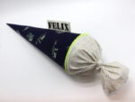 Wir nähen die passende Zeugnismappe in dem Stoff des Tütenkörpers. Hier gibt es nähere Details.