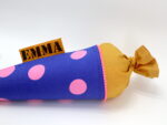 Die Schultüte wird aus hochwertigen Designerstoffen genäht und auf Wunsch mit dem Namen des Schulkindes individualisiert. Die Tüte ist 70cm hoch und wird mit einem entsprechenden Papprohling geliefert. Um eine bleibende Erinnerung an den Einschulungstag zu haben, kann nach der Einschulung der Papprohling aus der Schultüte entfernt werden und und mit dem Inlet als Kuschelkissen Einzug in das Kinderzimmer halten.