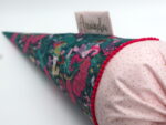 Die Schultüte wird aus hochwertigen Designerstoffen genäht und auf Wunsch mit dem Namen des Schulkindes individualisiert. Die Tüte ist 70cm hoch und wird mit einem entsprechenden Papprohling geliefert. Um eine bleibende Erinnerung an den Einschulungstag zu haben, kann nach der Einschulung der Papprohling aus der Schultüte entfernt werden und und mit dem Inlet als Kuschelkissen Einzug in das Kinderzimmer halten.
