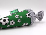 Die Schultüte wird aus hochwertigen Designerstoffen genäht und auf Wunsch mit dem Namen des Schulkindes individualisiert. Die Tüte ist 70cm hoch und wird mit einem entsprechenden Papprohling geliefert. Um eine bleibende Erinnerung an den Einschulungstag zu haben, kann nach der Einschulung der Papprohling aus der Schultüte entfernt werden und und mit dem Inlet als Kuschelkissen Einzug in das Kinderzimmer halten.