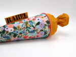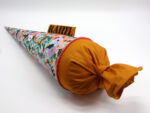 Die Schultüte wird aus hochwertigen Designerstoffen genäht und auf Wunsch mit dem Namen des Schulkindes individualisiert. Die Tüte wird mit einem entsprechenden Papprohling geliefert. Um eine bleibende Erinnerung an den Einschulungstag zu haben, kann nach der Einschulung der Papprohling aus der Schultüte entfernt werden und und mit dem Inlet als Kuschelkissen Einzug in das Kinderzimmer halten.