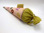 Wir nähen die passende Zeugnismappe in dem Stoff des Tütenkörpers. Hier gibt es nähere Details.