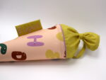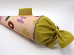 Die Schultüte wird aus hochwertigen Designerstoffen genäht und auf Wunsch mit dem Namen des Schulkindes individualisiert. Die Tüte ist 70cm hoch und wird mit einem entsprechenden Papprohling geliefert. Um eine bleibende Erinnerung an den Einschulungstag zu haben, kann nach der Einschulung der Papprohling aus der Schultüte entfernt werden und und mit dem Inlet als Kuschelkissen Einzug in das Kinderzimmer halten.