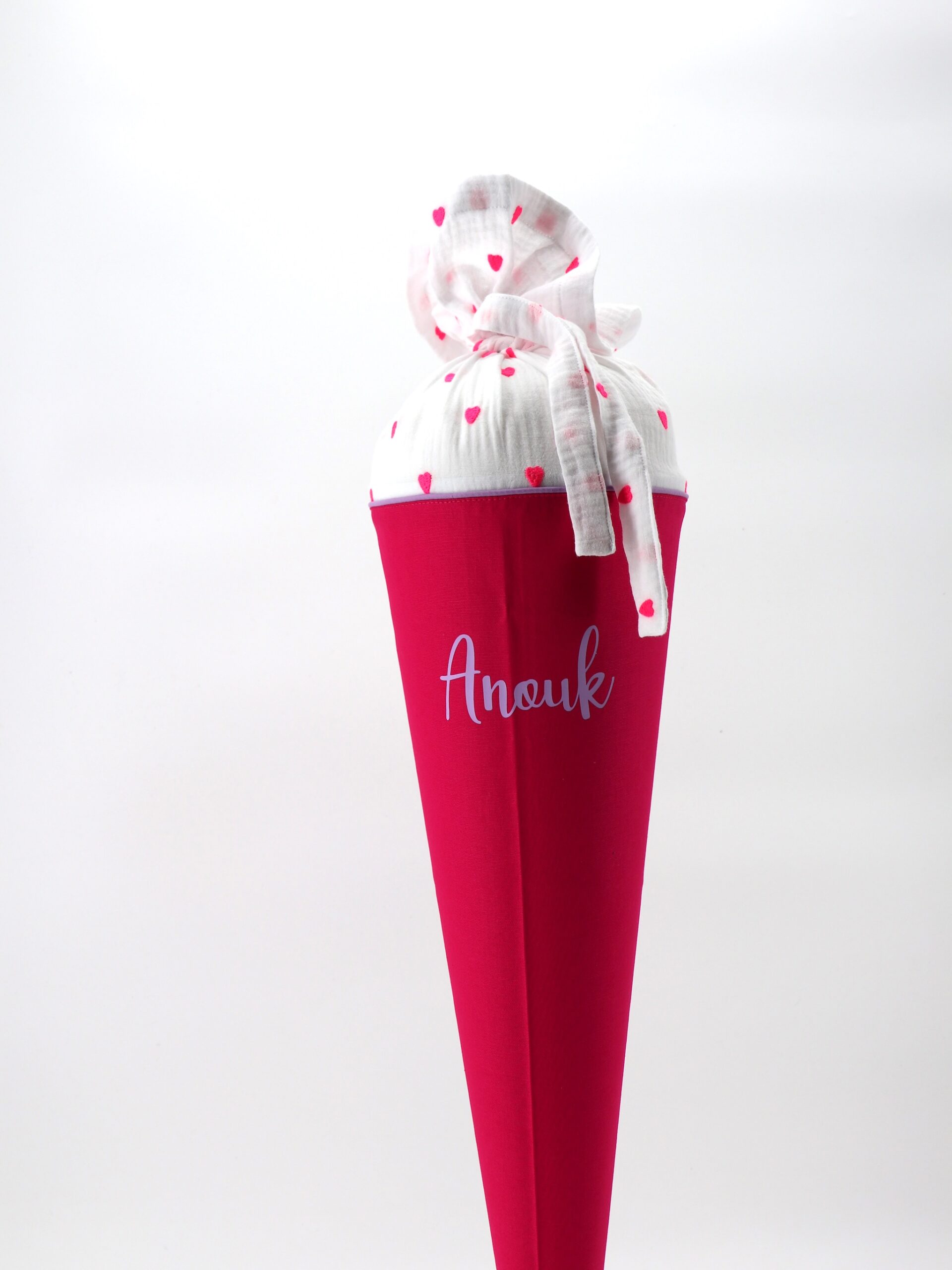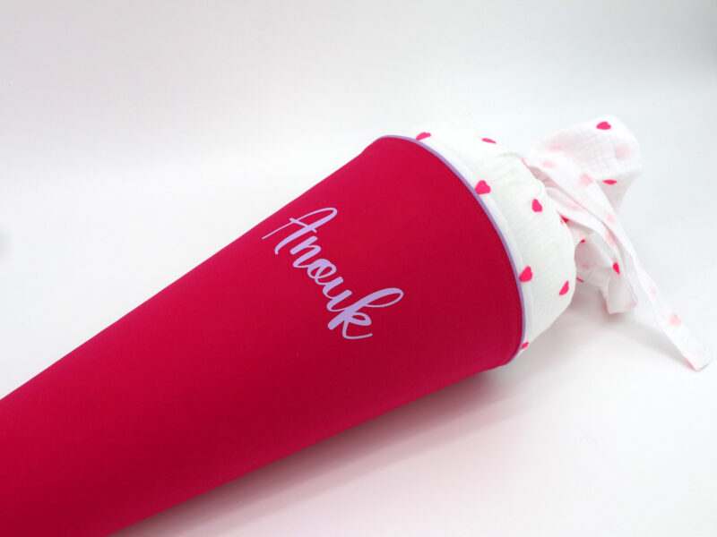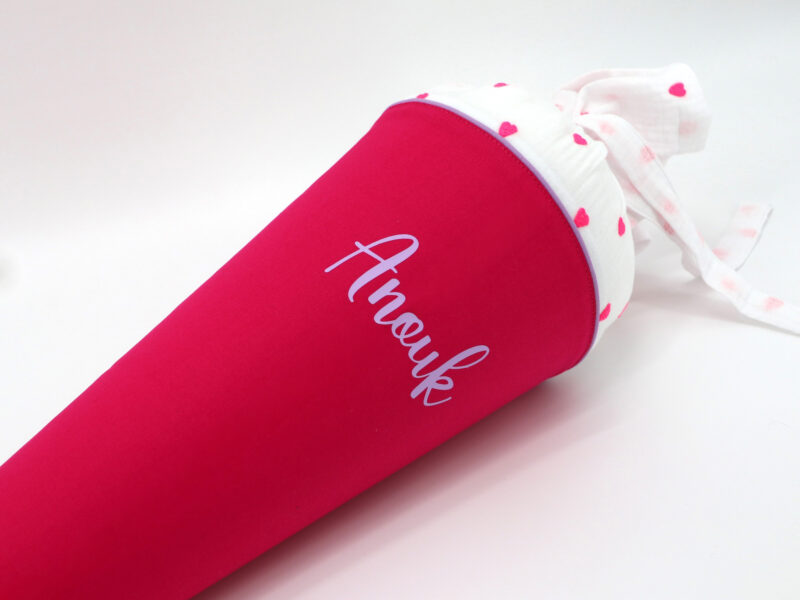 Die Schultüte wird aus hochwertigen Designerstoffen genäht und auf Wunsch mit dem Namen des Schulkindes individualisiert. Die Tüte ist 70cm hoch und wird mit einem entsprechenden Papprohling geliefert. Um eine bleibende Erinnerung an den Einschulungstag zu haben, kann nach der Einschulung der Papprohling aus der Schultüte entfernt werden und und mit dem Inlet als Kuschelkissen Einzug in das Kinderzimmer halten.