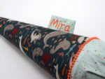 Wir nähen die passende Zeugnismappe in dem Stoff des Tütenkörpers. Hier gibt es nähere Details.