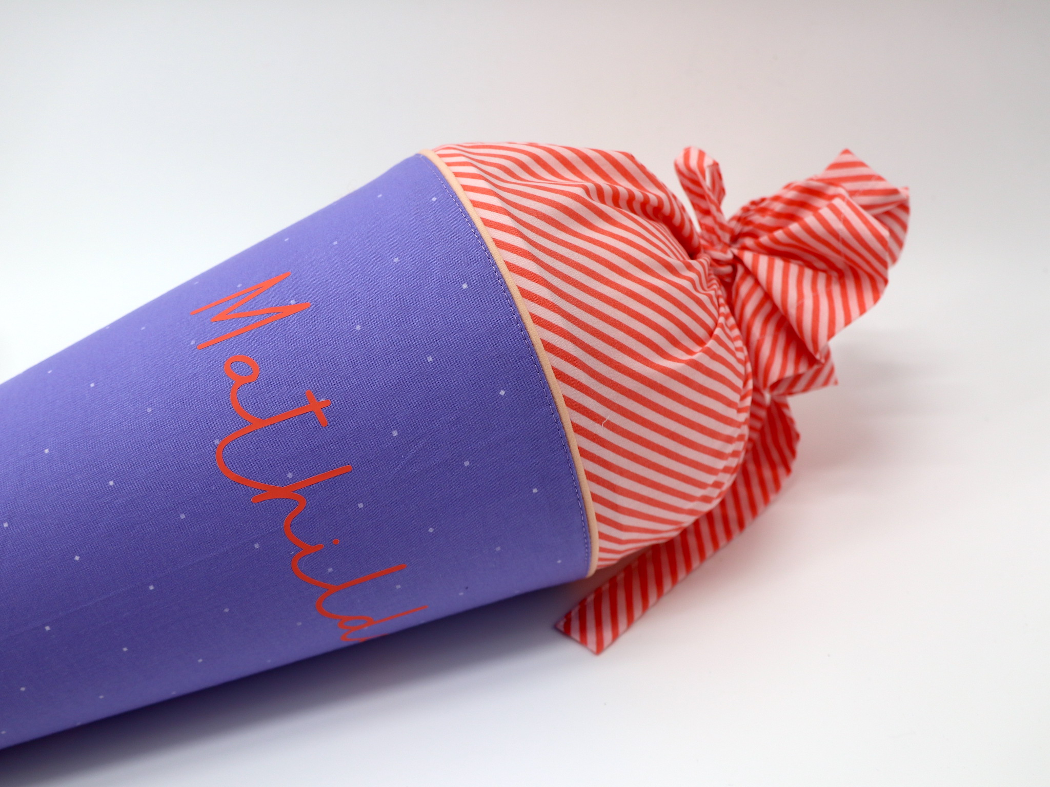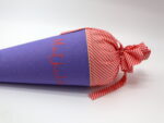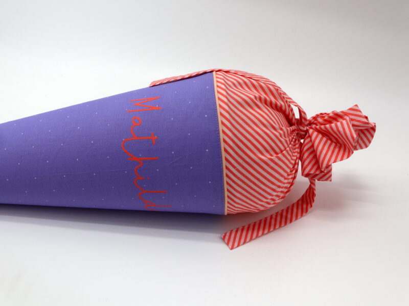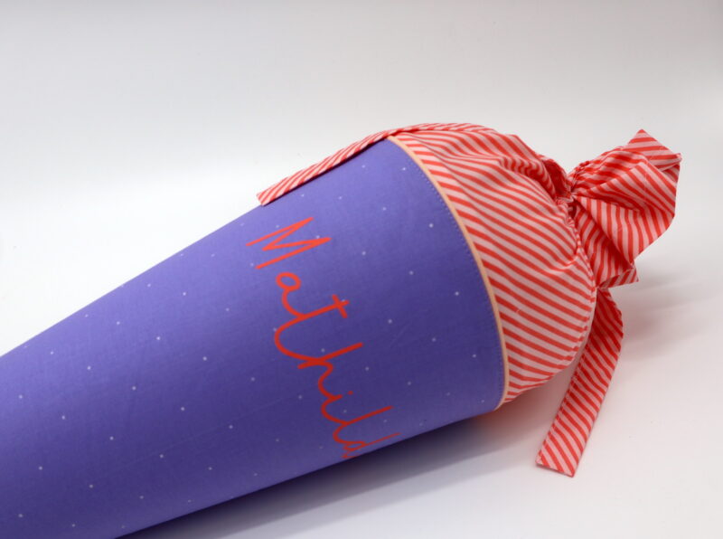 Wir nähen die passende Zeugnismappe in dem Stoff des Tütenkörpers. Hier gibt es nähere Details.