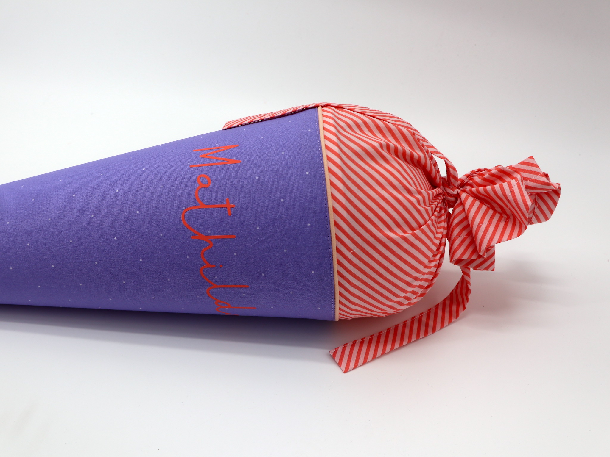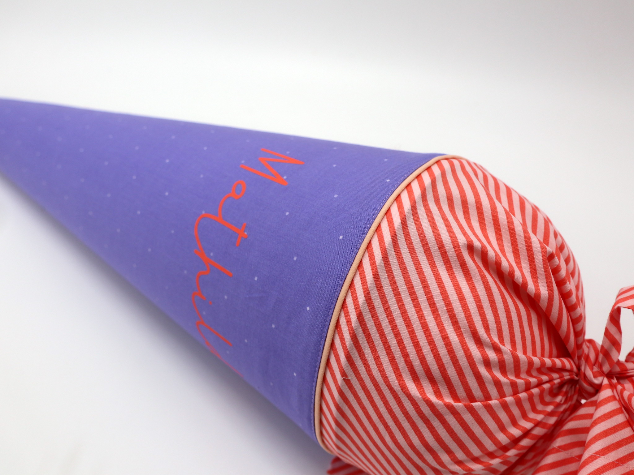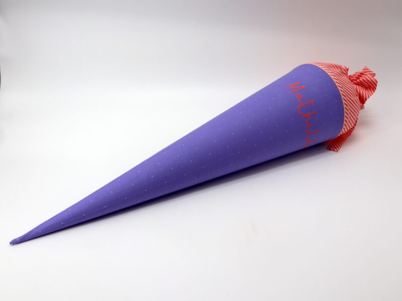 Die Schultüte wird aus hochwertigen Designerstoffen genäht und auf Wunsch mit dem Namen des Schulkindes individualisiert. Die Tüte ist 70cm hoch und wird mit einem entsprechenden Papprohling geliefert. Um eine bleibende Erinnerung an den Einschulungstag zu haben, kann nach der Einschulung der Papprohling aus der Schultüte entfernt werden und und mit dem Inlet als Kuschelkissen Einzug in das Kinderzimmer halten.