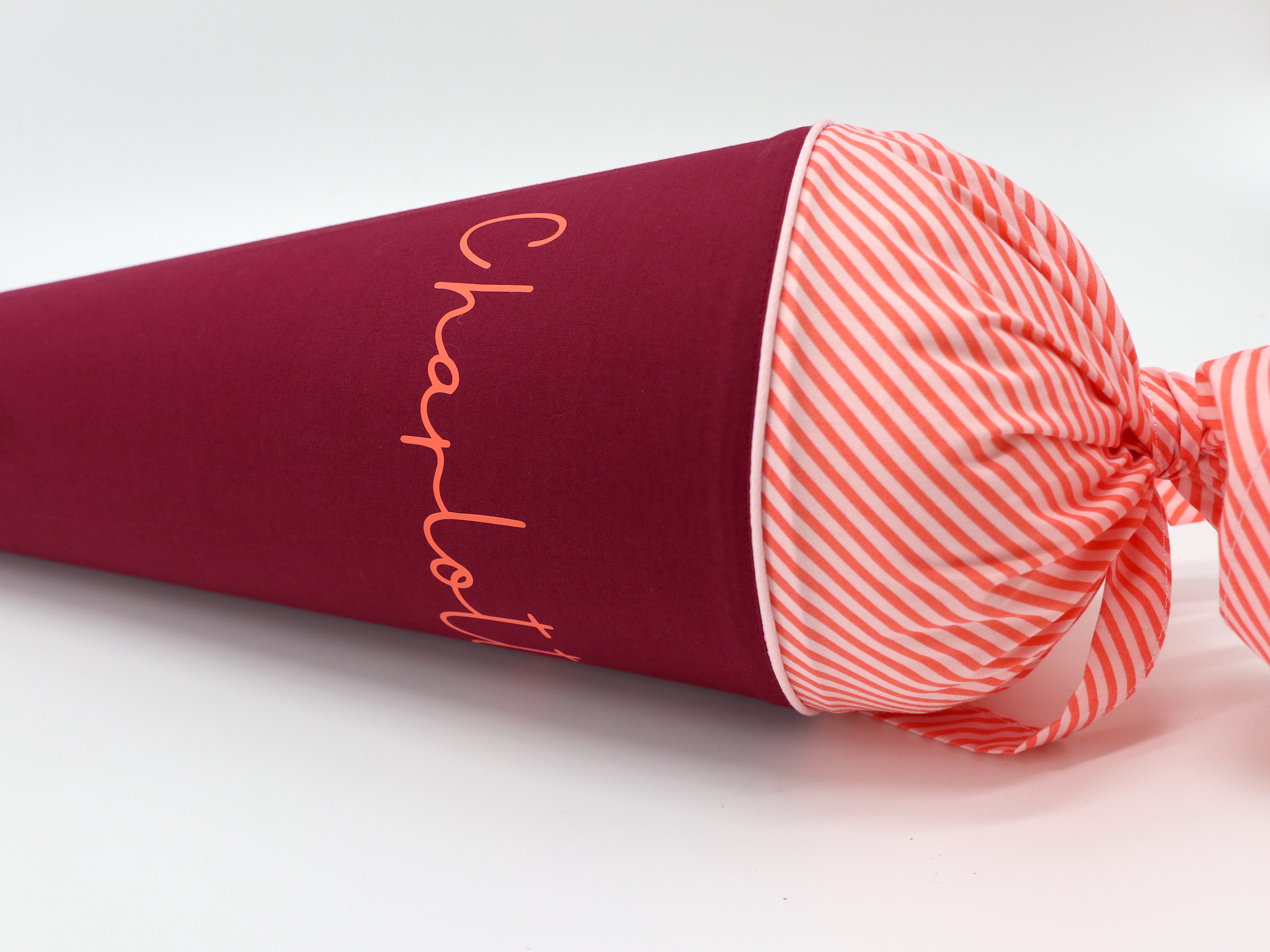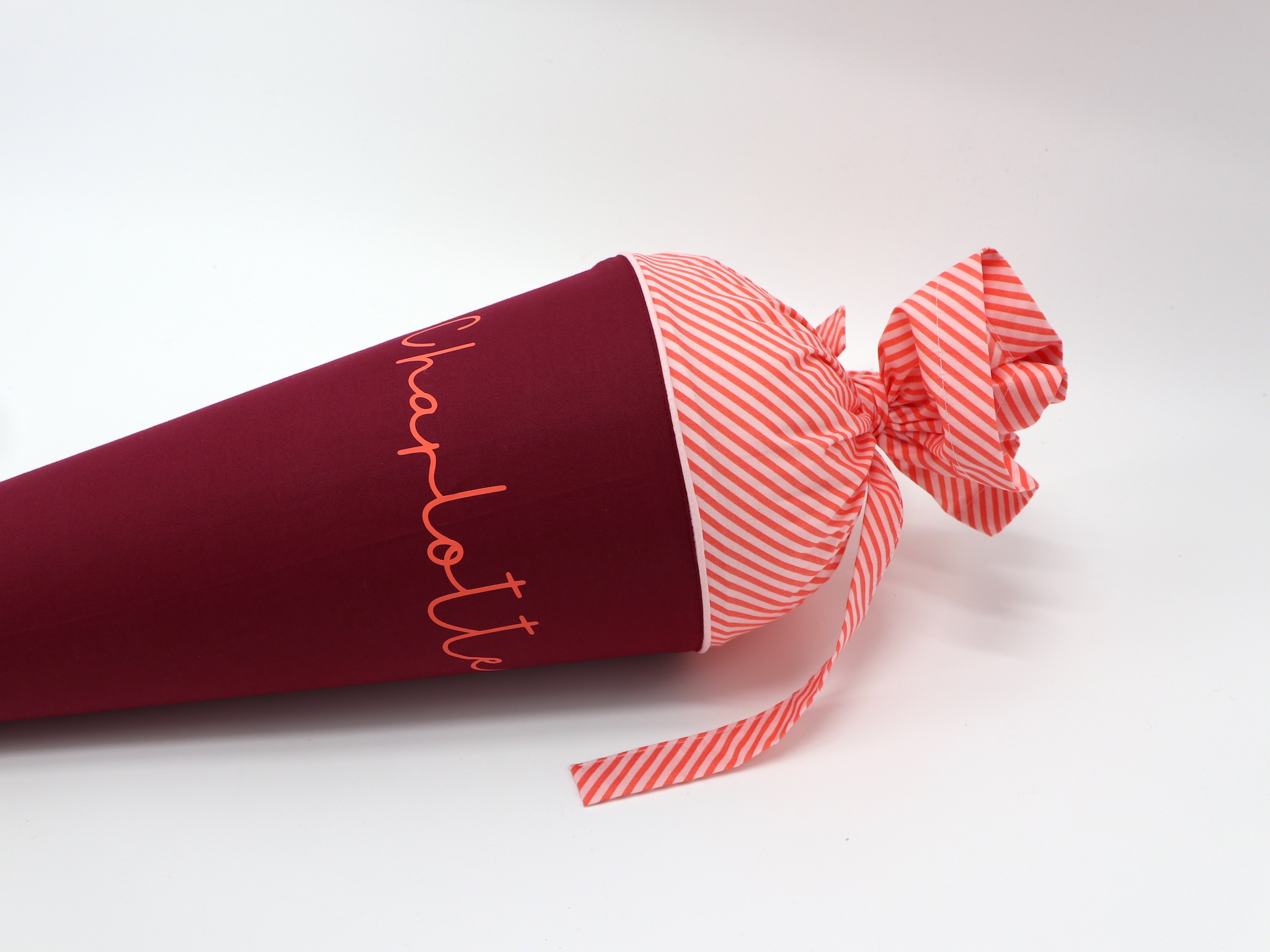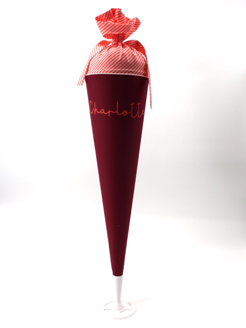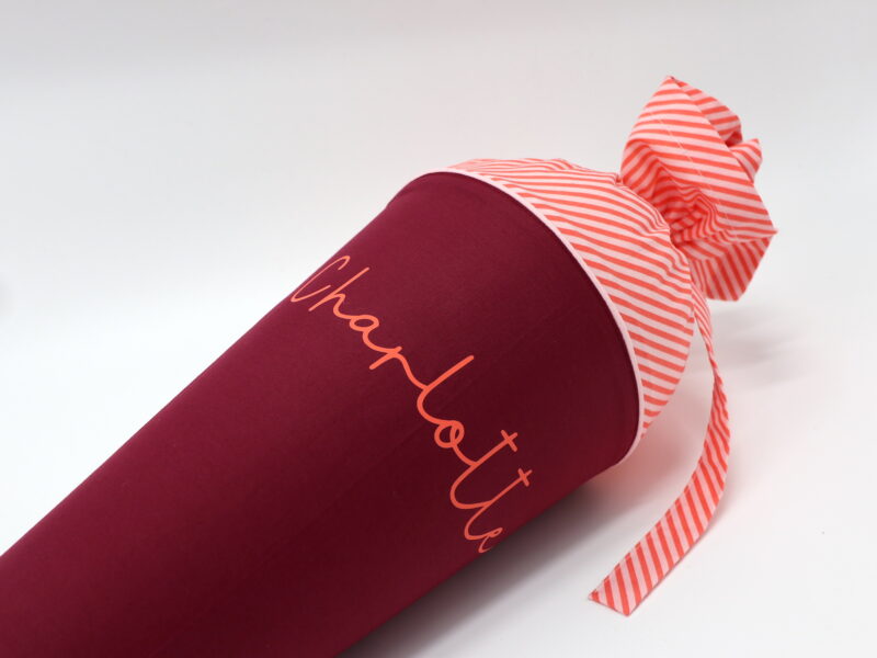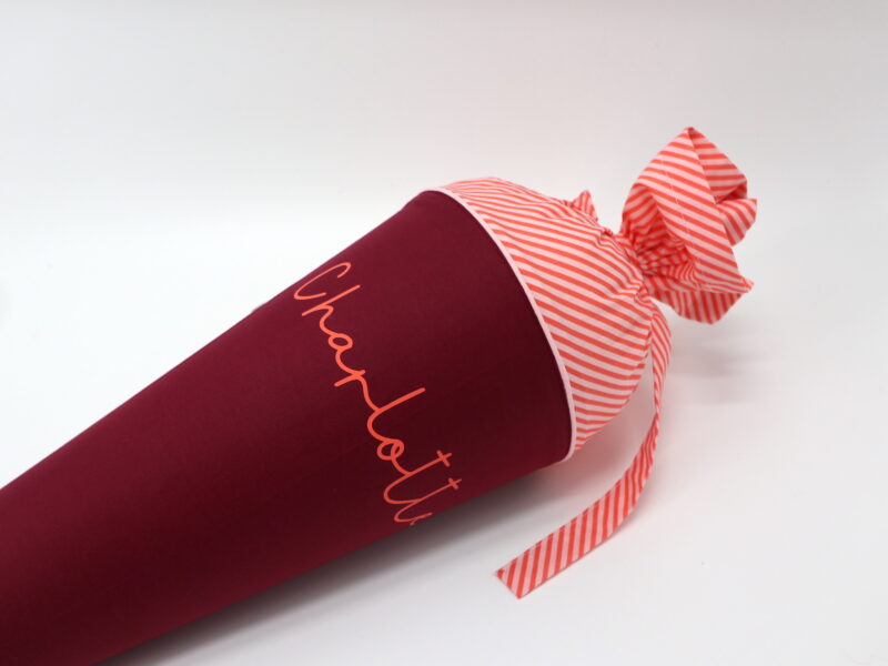 Die Schultüte wird aus hochwertigen Designerstoffen genäht und auf Wunsch mit dem Namen des Schulkindes individualisiert. Die Tüte ist 70cm hoch und wird mit einem entsprechenden Papprohling geliefert. Um eine bleibende Erinnerung an den Einschulungstag zu haben, kann nach der Einschulung der Papprohling aus der Schultüte entfernt werden und und mit dem Inlet als Kuschelkissen Einzug in das Kinderzimmer halten.