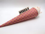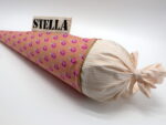Die Schultüte wird aus hochwertigen Designerstoffen genäht und auf Wunsch mit dem Namen des Schulkindes individualisiert. Die Tüte ist 70cm hoch und wird mit einem entsprechenden Papprohling geliefert. Um eine bleibende Erinnerung an den Einschulungstag zu haben, kann nach der Einschulung der Papprohling aus der Schultüte entfernt werden und und mit dem Inlet als Kuschelkissen Einzug in das Kinderzimmer halten.