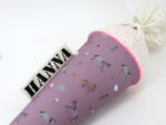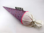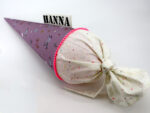 Die Schultüte wird aus hochwertigen Designerstoffen genäht und auf Wunsch mit dem Namen des Schulkindes individualisiert. Die Tüte ist 70cm hoch und wird mit einem entsprechenden Papprohling geliefert. Um eine bleibende Erinnerung an den Einschulungstag zu haben, kann nach der Einschulung der Papprohling aus der Schultüte entfernt werden und und mit dem Inlet als Kuschelkissen Einzug in das Kinderzimmer halten.