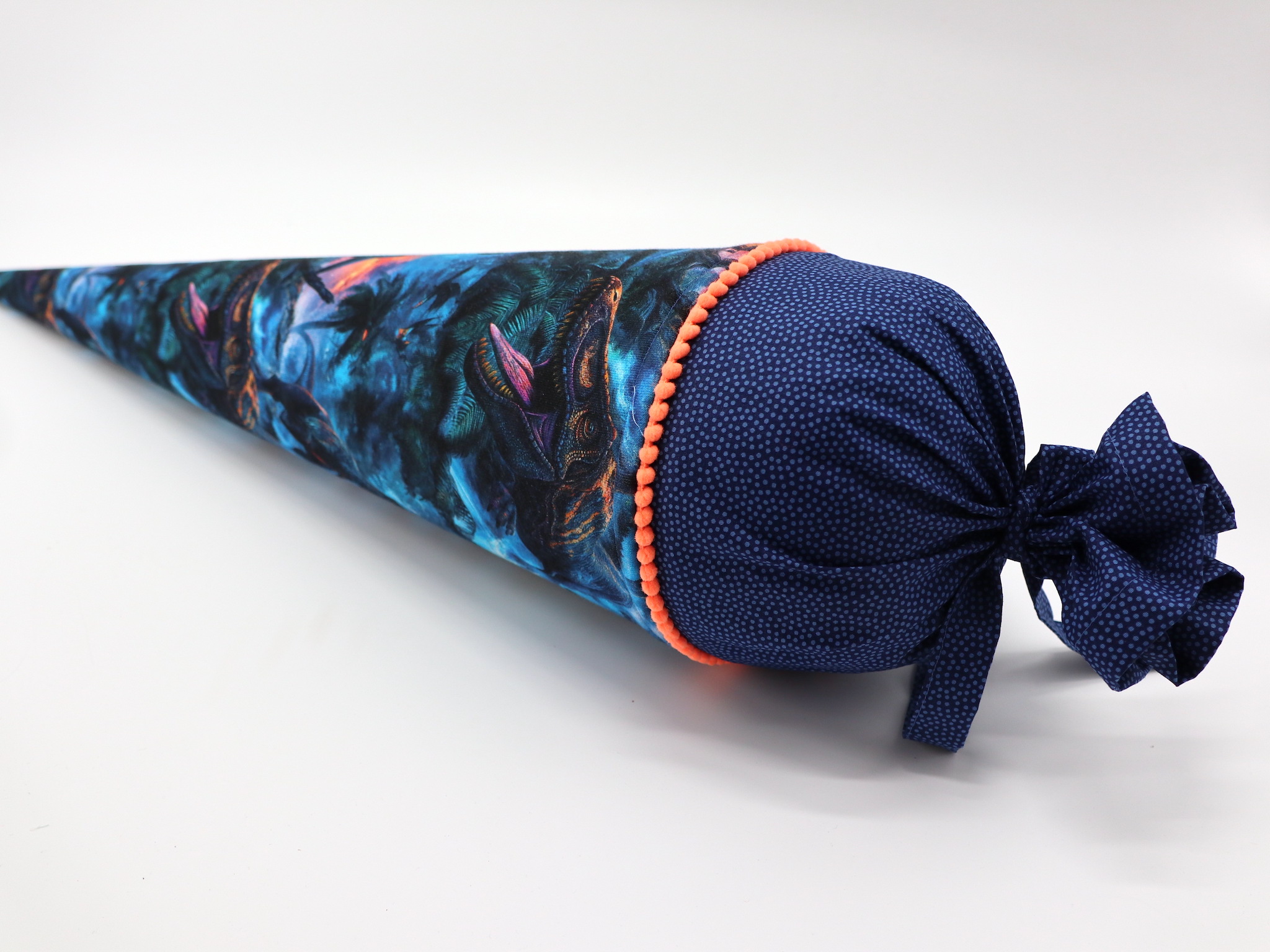 Die Schultüte wird aus hochwertigen Designerstoffen genäht und auf Wunsch mit dem Namen des Schulkindes individualisiert. Die Tüte ist 70cm hoch und wird mit einem entsprechenden Papprohling geliefert. Um eine bleibende Erinnerung an den Einschulungstag zu haben, kann nach der Einschulung der Papprohling aus der Schultüte entfernt werden und und mit dem Inlet als Kuschelkissen Einzug in das Kinderzimmer halten.