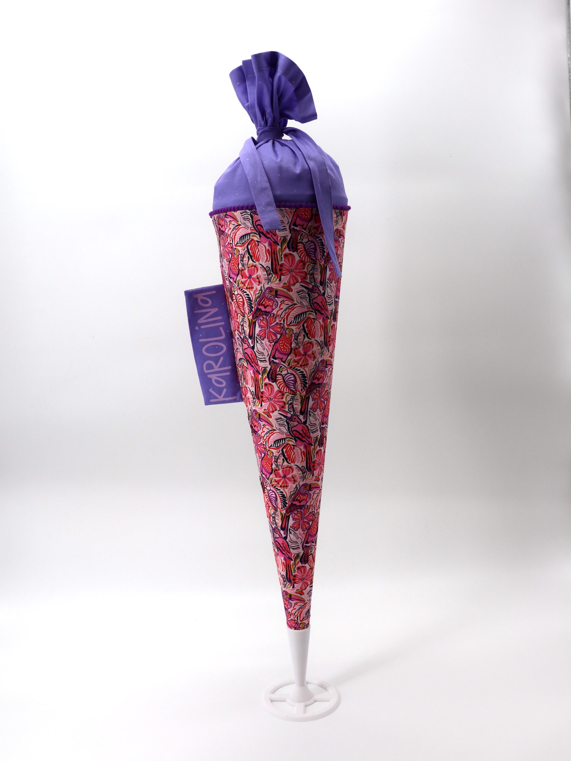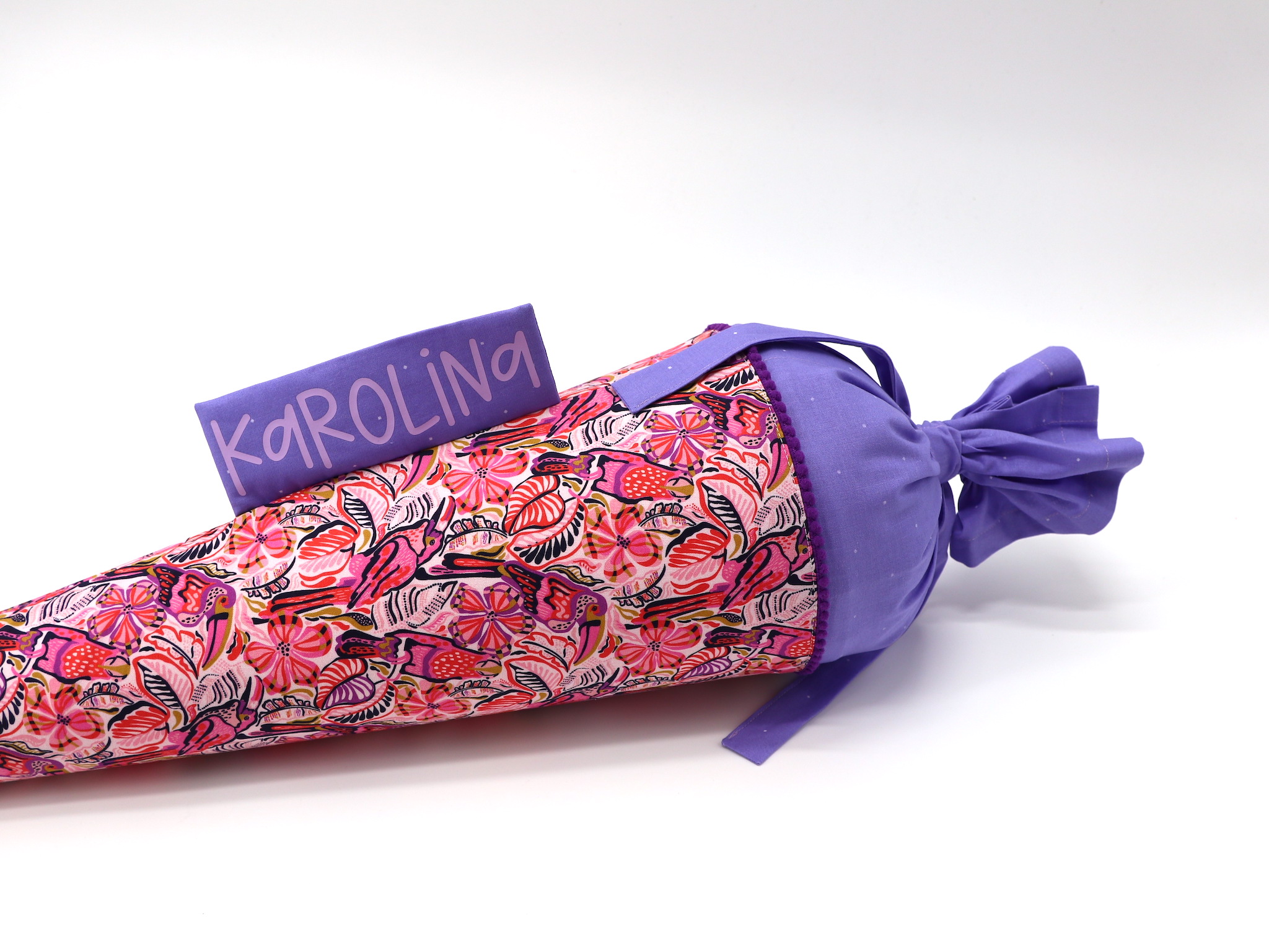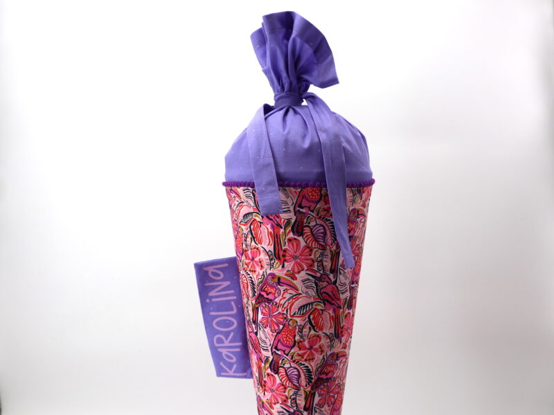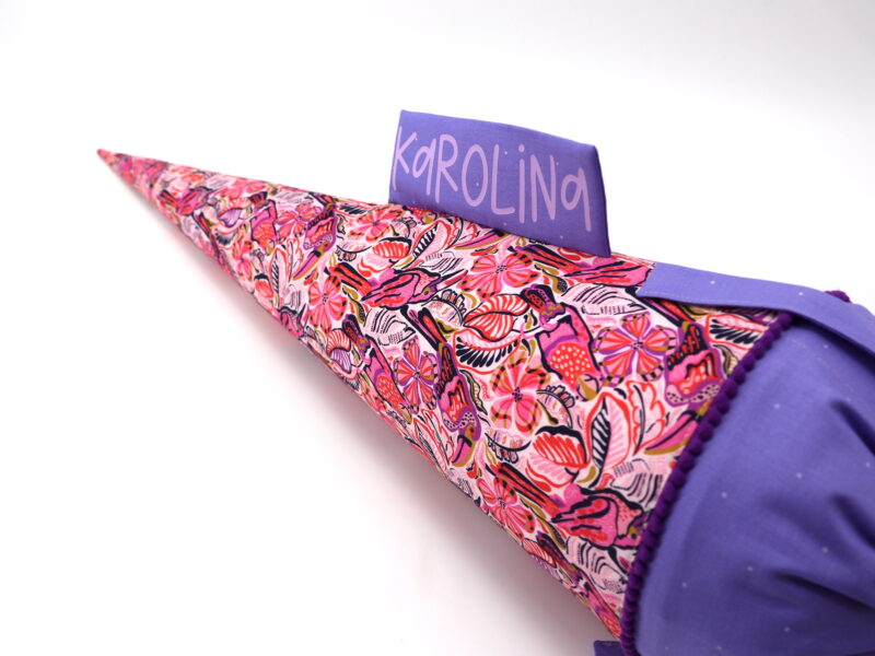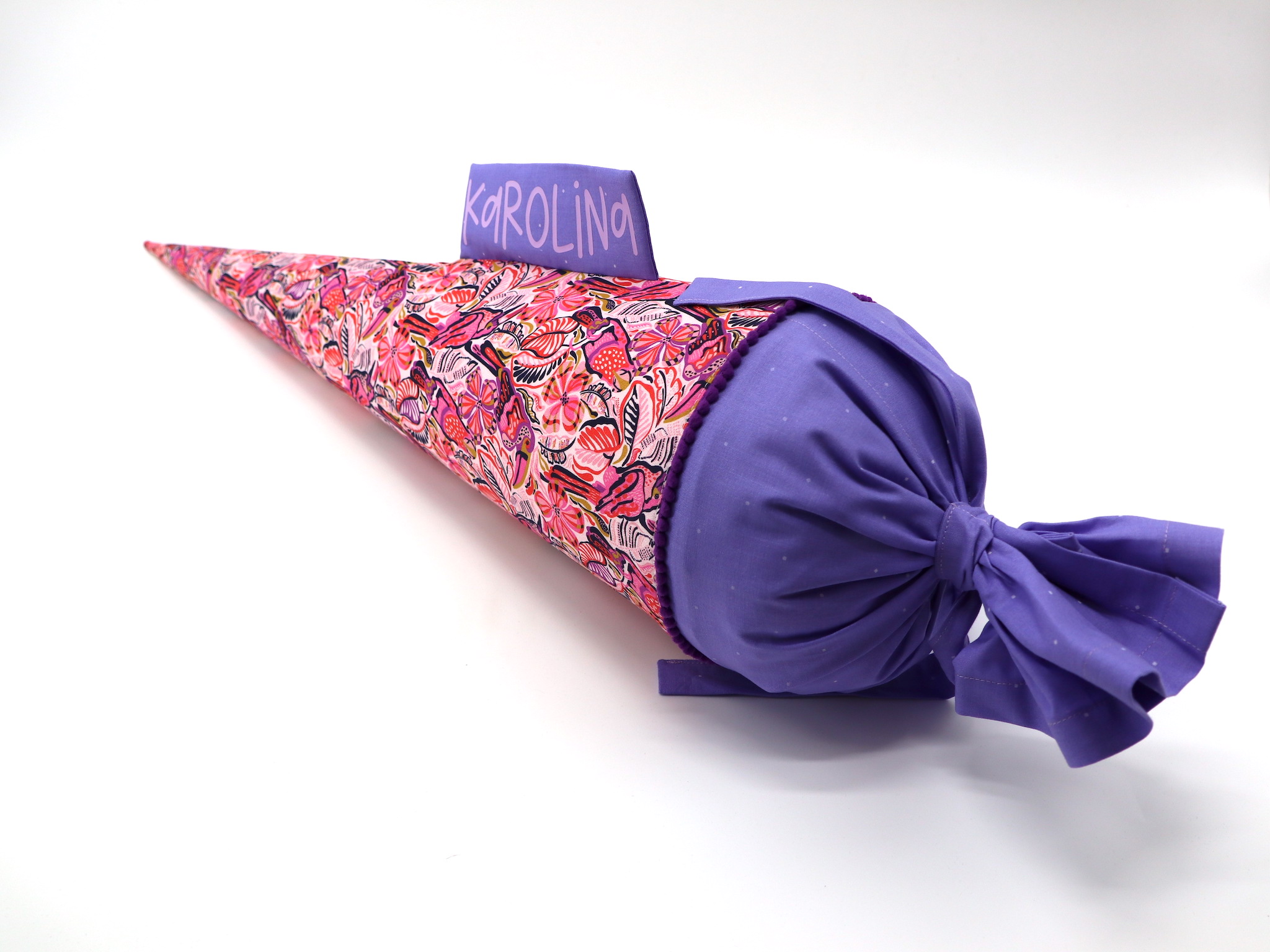 Die Schultüte wird aus hochwertigen Designerstoffen genäht und auf Wunsch mit dem Namen des Schulkindes individualisiert. Die Tüte ist 70cm hoch und wird mit einem entsprechenden Papprohling geliefert. Um eine bleibende Erinnerung an den Einschulungstag zu haben, kann nach der Einschulung der Papprohling aus der Schultüte entfernt werden und und mit dem Inlet als Kuschelkissen Einzug in das Kinderzimmer halten.