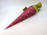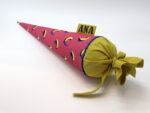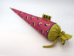 Die Schultüte wird aus hochwertigen Designerstoffen genäht und auf Wunsch mit dem Namen des Schulkindes individualisiert. Die Tüte ist 70cm hoch und wird mit einem entsprechenden Papprohling geliefert. Um eine bleibende Erinnerung an den Einschulungstag zu haben, kann nach der Einschulung der Papprohling aus der Schultüte entfernt werden und und mit dem Inlet als Kuschelkissen Einzug in das Kinderzimmer halten.