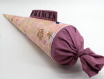 Die Schultüte wird aus hochwertigen Designerstoffen genäht und auf Wunsch mit dem Namen des Schulkindes individualisiert. Die Tüte ist 70cm hoch und wird mit einem entsprechenden Papprohling geliefert. Um eine bleibende Erinnerung an den Einschulungstag zu haben, kann nach der Einschulung der Papprohling aus der Schultüte entfernt werden und und mit dem Inlet als Kuschelkissen Einzug in das Kinderzimmer halten.