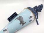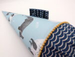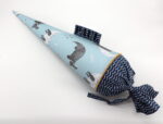 Die Schultüte wird aus hochwertigen Designerstoffen genäht und auf Wunsch mit dem Namen des Schulkindes individualisiert. Die Tüte ist 70cm hoch und wird mit einem entsprechenden Papprohling geliefert. Um eine bleibende Erinnerung an den Einschulungstag zu haben, kann nach der Einschulung der Papprohling aus der Schultüte entfernt werden und und mit dem Inlet als Kuschelkissen Einzug in das Kinderzimmer halten.