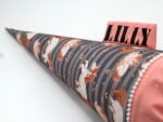 Die Schultüte wird aus hochwertigen Designerstoffen genäht und auf Wunsch mit dem Namen des Schulkindes individualisiert. Die Tüte ist 70cm hoch und wird mit einem entsprechenden Papprohling geliefert. Um eine bleibende Erinnerung an den Einschulungstag zu haben, kann nach der Einschulung der Papprohling aus der Schultüte entfernt werden und und mit dem Inlet als Kuschelkissen Einzug in das Kinderzimmer halten.