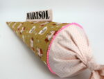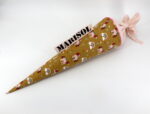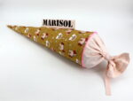 Die Schultüte wird aus hochwertigen Designerstoffen genäht und auf Wunsch mit dem Namen des Schulkindes individualisiert. Die Tüte ist 70cm hoch und wird mit einem entsprechenden Papprohling geliefert. Um eine bleibende Erinnerung an den Einschulungstag zu haben, kann nach der Einschulung der Papprohling aus der Schultüte entfernt werden und und mit dem Inlet als Kuschelkissen Einzug in das Kinderzimmer halten.