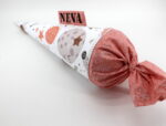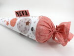 Die Schultüte wird aus hochwertigen Designerstoffen genäht und auf Wunsch mit dem Namen des Schulkindes individualisiert. Die Tüte ist 70cm hoch und wird mit einem entsprechenden Papprohling geliefert. Um eine bleibende Erinnerung an den Einschulungstag zu haben, kann nach der Einschulung der Papprohling aus der Schultüte entfernt werden und und mit dem Inlet als Kuschelkissen Einzug in das Kinderzimmer halten.