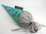 Die Schultüte wird aus hochwertigen Designerstoffen genäht und auf Wunsch mit dem Namen des Schulkindes individualisiert. Die Tüte ist 70cm hoch und wird mit einem entsprechenden Papprohling geliefert. Um eine bleibende Erinnerung an den Einschulungstag zu haben, kann nach der Einschulung der Papprohling aus der Schultüte entfernt werden und und mit dem Inlet als Kuschelkissen Einzug in das Kinderzimmer halten.