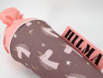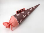 Die Schultüte wird aus hochwertigen Designerstoffen genäht und auf Wunsch mit dem Namen des Schulkindes individualisiert. Die Tüte ist 70cm hoch und wird mit einem entsprechenden Papprohling geliefert. Um eine bleibende Erinnerung an den Einschulungstag zu haben, kann nach der Einschulung der Papprohling aus der Schultüte entfernt werden und und mit dem Inlet als Kuschelkissen Einzug in das Kinderzimmer halten.