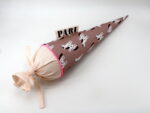 Die Schultüte wird aus hochwertigen Designerstoffen genäht und auf Wunsch mit dem Namen des Schulkindes individualisiert. Die Tüte ist 70cm hoch und wird mit einem entsprechenden Papprohling geliefert. Um eine bleibende Erinnerung an den Einschulungstag zu haben, kann nach der Einschulung der Papprohling aus der Schultüte entfernt werden und und mit dem Inlet als Kuschelkissen Einzug in das Kinderzimmer halten.