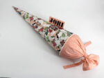 Die Schultüte wird aus hochwertigen Designerstoffen genäht und auf Wunsch mit dem Namen des Schulkindes individualisiert. Die Tüte ist 70cm hoch und wird mit einem entsprechenden Papprohling geliefert. Um eine bleibende Erinnerung an den Einschulungstag zu haben, kann nach der Einschulung der Papprohling aus der Schultüte entfernt werden und und mit dem Inlet als Kuschelkissen Einzug in das Kinderzimmer halten.