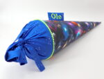 Die Schultüte wird aus hochwertigen Designerstoffen genäht und auf Wunsch mit dem Namen des Schulkindes individualisiert. Die Tüte ist 70cm hoch und wird mit einem entsprechenden Papprohling geliefert. Um eine bleibende Erinnerung an den Einschulungstag zu haben, kann nach der Einschulung der Papprohling aus der Schultüte entfernt werden und und mit dem Inlet als Kuschelkissen Einzug in das Kinderzimmer halten.