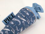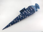 Die Schultüte wird aus hochwertigen Designerstoffen genäht und auf Wunsch mit dem Namen des Schulkindes individualisiert. Die Tüte ist 70cm hoch und wird mit einem entsprechenden Papprohling geliefert. Um eine bleibende Erinnerung an den Einschulungstag zu haben, kann nach der Einschulung der Papprohling aus der Schultüte entfernt werden und und mit dem Inlet als Kuschelkissen Einzug in das Kinderzimmer halten.