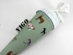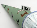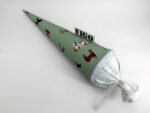 Die Schultüte wird aus hochwertigen Designerstoffen genäht und auf Wunsch mit dem Namen des Schulkindes individualisiert. Die Tüte ist 70cm hoch und wird mit einem entsprechenden Papprohling geliefert. Um eine bleibende Erinnerung an den Einschulungstag zu haben, kann nach der Einschulung der Papprohling aus der Schultüte entfernt werden und und mit dem Inlet als Kuschelkissen Einzug in das Kinderzimmer halten.