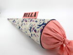 Die Schultüte wird aus hochwertigen Designerstoffen genäht und auf Wunsch mit dem Namen des Schulkindes individualisiert. Die Tüte ist 70cm hoch und wird mit einem entsprechenden Papprohling geliefert. Um eine bleibende Erinnerung an den Einschulungstag zu haben, kann nach der Einschulung der Papprohling aus der Schultüte entfernt werden und und mit dem Inlet als Kuschelkissen Einzug in das Kinderzimmer halten.