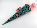 Die Schultüte wird aus hochwertigen Designerstoffen genäht und auf Wunsch mit dem Namen des Schulkindes individualisiert. Die Tüte ist 70cm hoch und wird mit einem entsprechenden Papprohling geliefert. Um eine bleibende Erinnerung an den Einschulungstag zu haben, kann nach der Einschulung der Papprohling aus der Schultüte entfernt werden und und mit dem Inlet als Kuschelkissen Einzug in das Kinderzimmer halten.