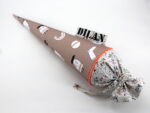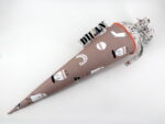 Die Schultüte wird aus hochwertigen Designerstoffen genäht und auf Wunsch mit dem Namen des Schulkindes individualisiert. Die Tüte ist 70cm hoch und wird mit einem entsprechenden Papprohling geliefert. Um eine bleibende Erinnerung an den Einschulungstag zu haben, kann nach der Einschulung der Papprohling aus der Schultüte entfernt werden und und mit dem Inlet als Kuschelkissen Einzug in das Kinderzimmer halten.