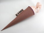 Die Schultüte wird aus hochwertigen Designerstoffen genäht und auf Wunsch mit dem Namen des Schulkindes individualisiert. Die Tüte ist 70cm hoch und wird mit einem entsprechenden Papprohling geliefert. Um eine bleibende Erinnerung an den Einschulungstag zu haben, kann nach der Einschulung der Papprohling aus der Schultüte entfernt werden und und mit dem Inlet als Kuschelkissen Einzug in das Kinderzimmer halten.