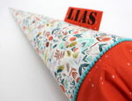 Wir nähen die passende Zeugnismappe in dem Stoff des Tütenkörpers. Hier gibt es nähere Details.
