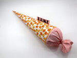 Die Schultüte wird aus hochwertigen Designerstoffen genäht und auf Wunsch mit dem Namen des Schulkindes individualisiert. Die Tüte ist 70cm hoch und wird mit einem entsprechenden Papprohling geliefert. Um eine bleibende Erinnerung an den Einschulungstag zu haben, kann nach der Einschulung der Papprohling aus der Schultüte entfernt werden und und mit dem Inlet als Kuschelkissen Einzug in das Kinderzimmer halten.
